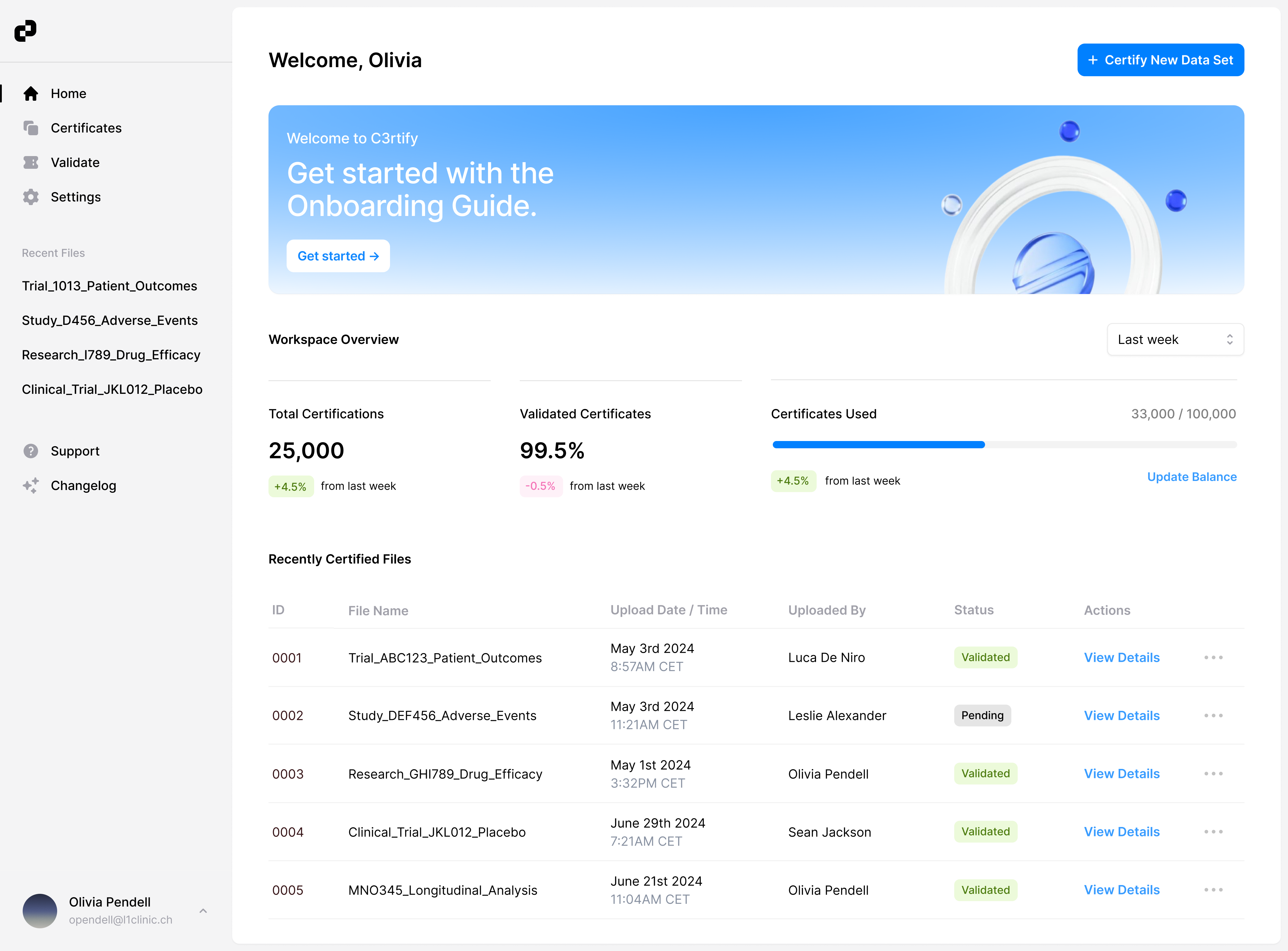C3rtify can certify a wide range of data types, including clinical trial results, patient records, research data, supply chain information, and more.